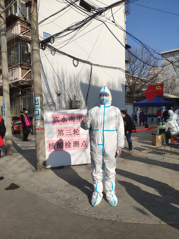 刘超,中共党员,党委统战部副部长,参加西青区李七庄街道御溪园社区核酸筛查志愿服务,参与完成人员通知与引导、现场秩序维护等。