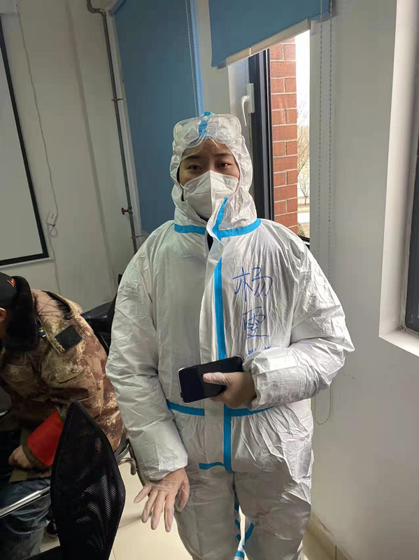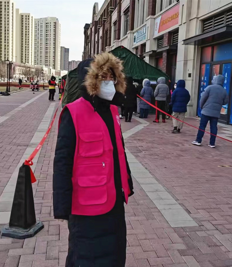 安静雅,中共党员,教学秘书,在西青区精武镇锦泽苑负责核酸检测现场秩序维护和居民信息核对工作。