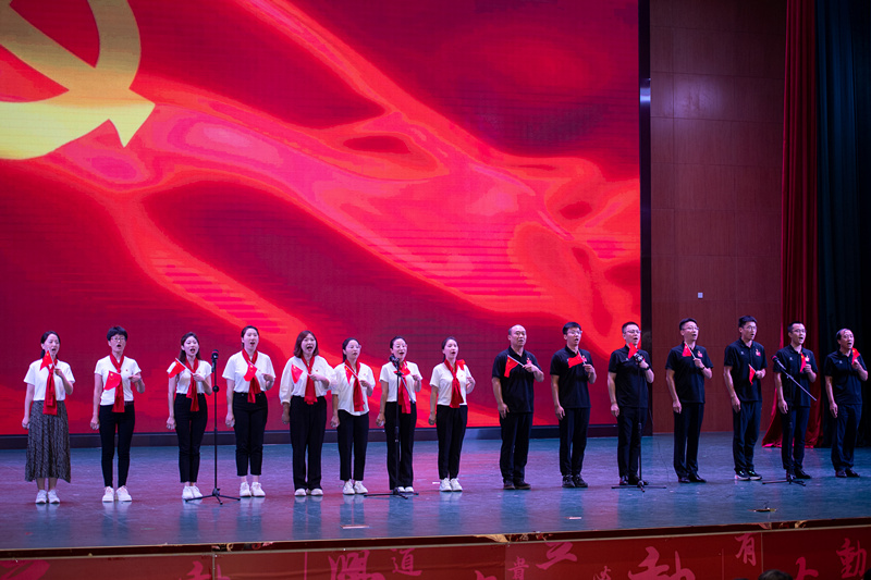 为庆祝中国共产党成立102周年,回顾党的光辉历程,讴歌党的伟大成就,7月4日下午,机关党委与党委统战部联合举办“同唱一首歌、永远跟党走”合唱比赛。机关党员干部、学校党外知识分子代表组建8支队伍,100余人参加活动。ld体育中国官方网站党委书记张立顺、副院长张卫国、副院长杨智出席活动,并以普通党员身份参加所在支部合唱。学校各二级单位相关负责人、相关专业老师担任本次比赛评委。党委统战部部长、机关党委书记依惠琴为比赛致辞。