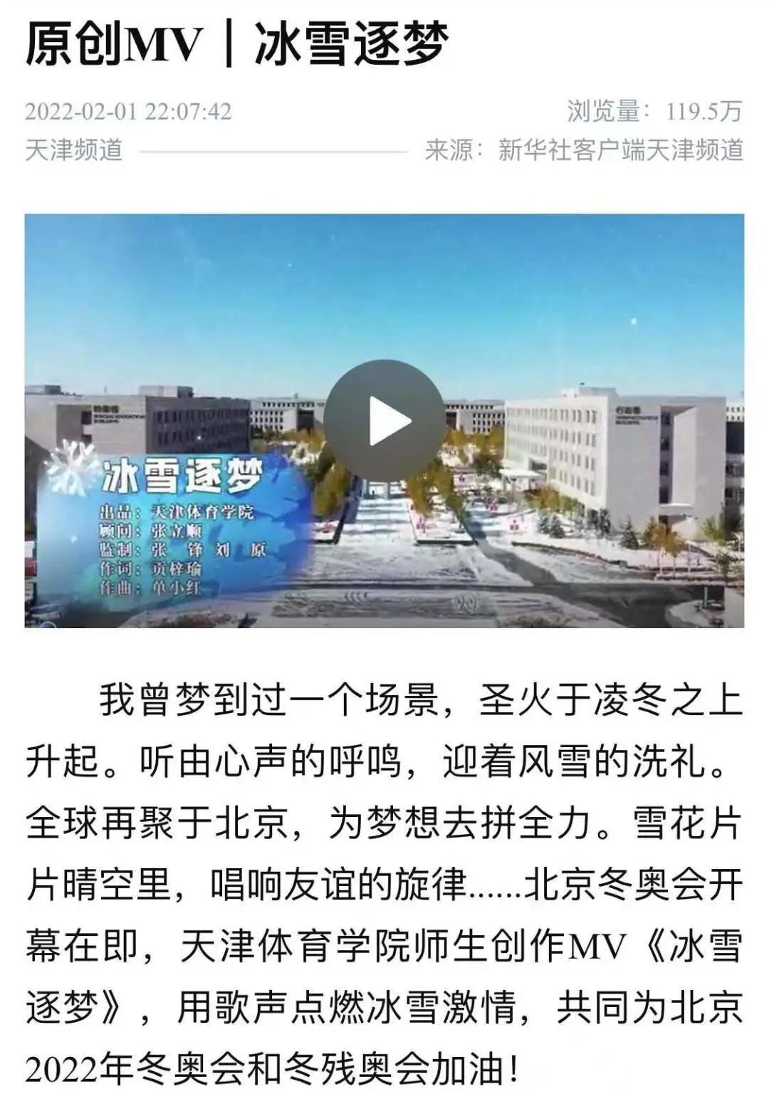 媒体看天体 | 新华社等中央和我市多家媒体报道我校师生创作MV《冰雪逐梦》助力冬奥