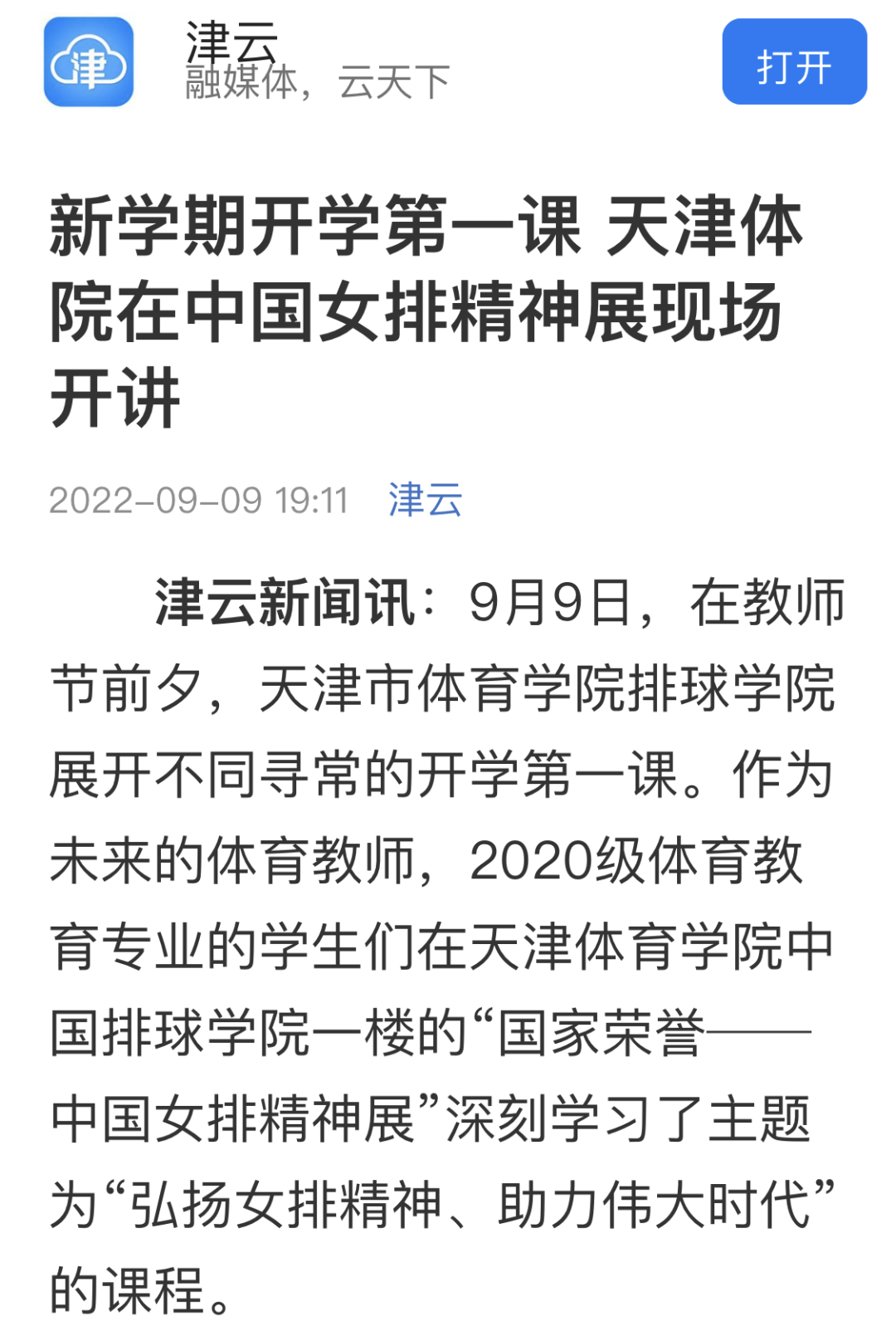 新学期开学第一课 天津体院在中国女排精神展现场开讲
