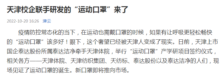 2022年10月18日,ld体育中国官方网站与天津泰达洁净材料有限公司产学研项目签约仪式在我校团泊校区乒羽馆举行。连日来,北方网、津云、《天津教育报》等我市主要媒体对此进行了报道。