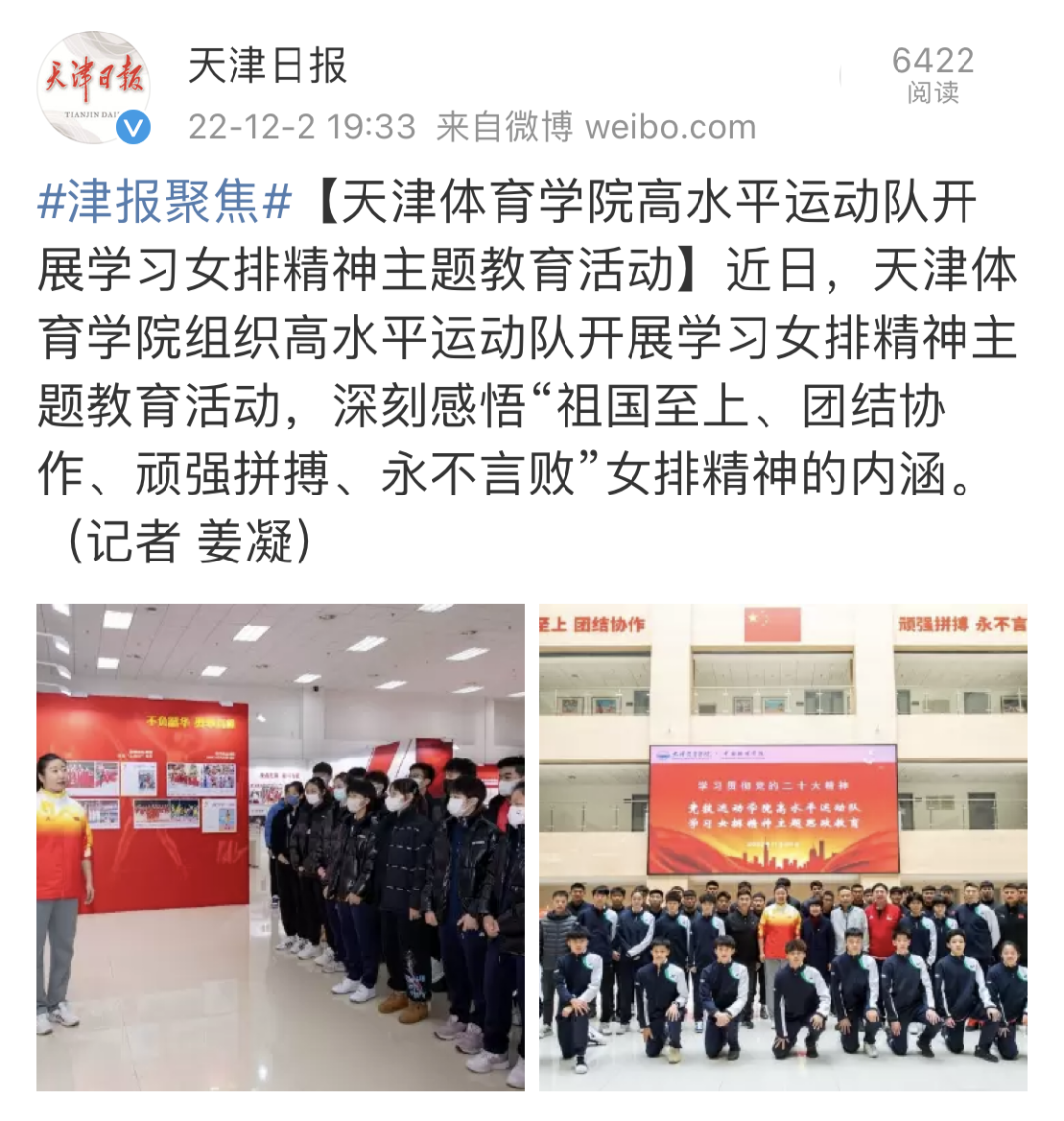 媒体看天体 | 中央和我市多家媒体报道我校深入学习贯彻党的二十大精神,组织高水平运动队开展学习女排精神主题教育活动