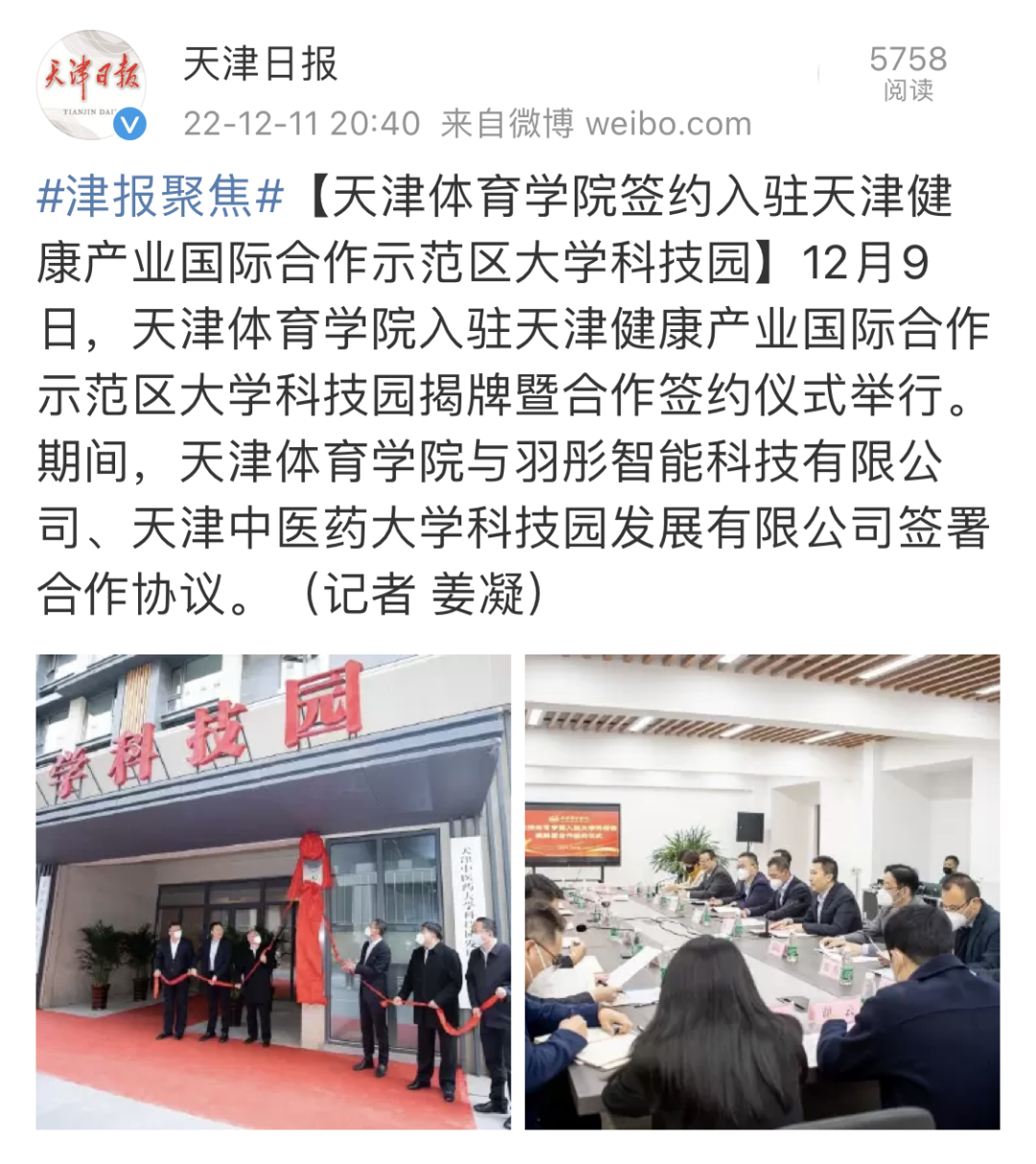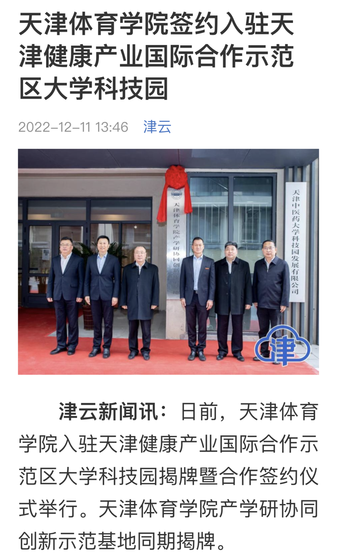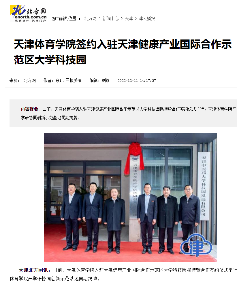 12月9日,我校入驻天津健康产业国际合作示范区大学科技园揭牌暨合作签约仪式举行。连日来,天津发布、天津日报新媒体、津云、北方网等我市多家媒体对此进行了报道。
