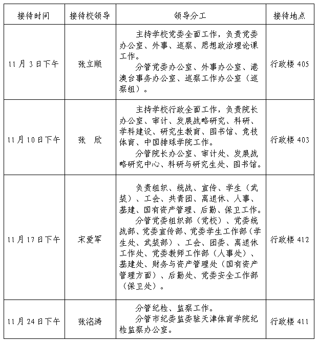 根据《ld体育中国官方网站领导干部接待日制度》规定及学校近期工作安排,现将2022年11月校领导接待师生来访安排通知如下。